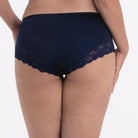 Stilren och feminin maxitrosa i färgen Maritime Blue från Anita Rosa Faia. Den höga midjan ger en smickrande siluett samtidigt som spetsdetaljerna framtill och den mjuka spetskanten baktill ger en elegant och exklusiv look. En liten rosett framtill sätter en söt och kvinnlig detalj. Matcha gärna med BH ur samma serie för ett fulländat set.
