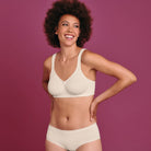 Anita Leni i färgen Crystal är en ovadderad protes-bh utan byglar med helkupa som ger ett tryggt stöd och en mjuk, följsam passform. Den släta känslan mot huden gör den bekväm för långa dagar, och den diskreta kanten vid kupan ger ett rent uttryck under kläder. Modellen har fickor på båda sidor, vilket gör att den även kan användas med bröstprotes vid behov. Reglerbara axelband och en U-formad rygg hjälper bh:n att sitta stabilt och ge en jämn avlastning.