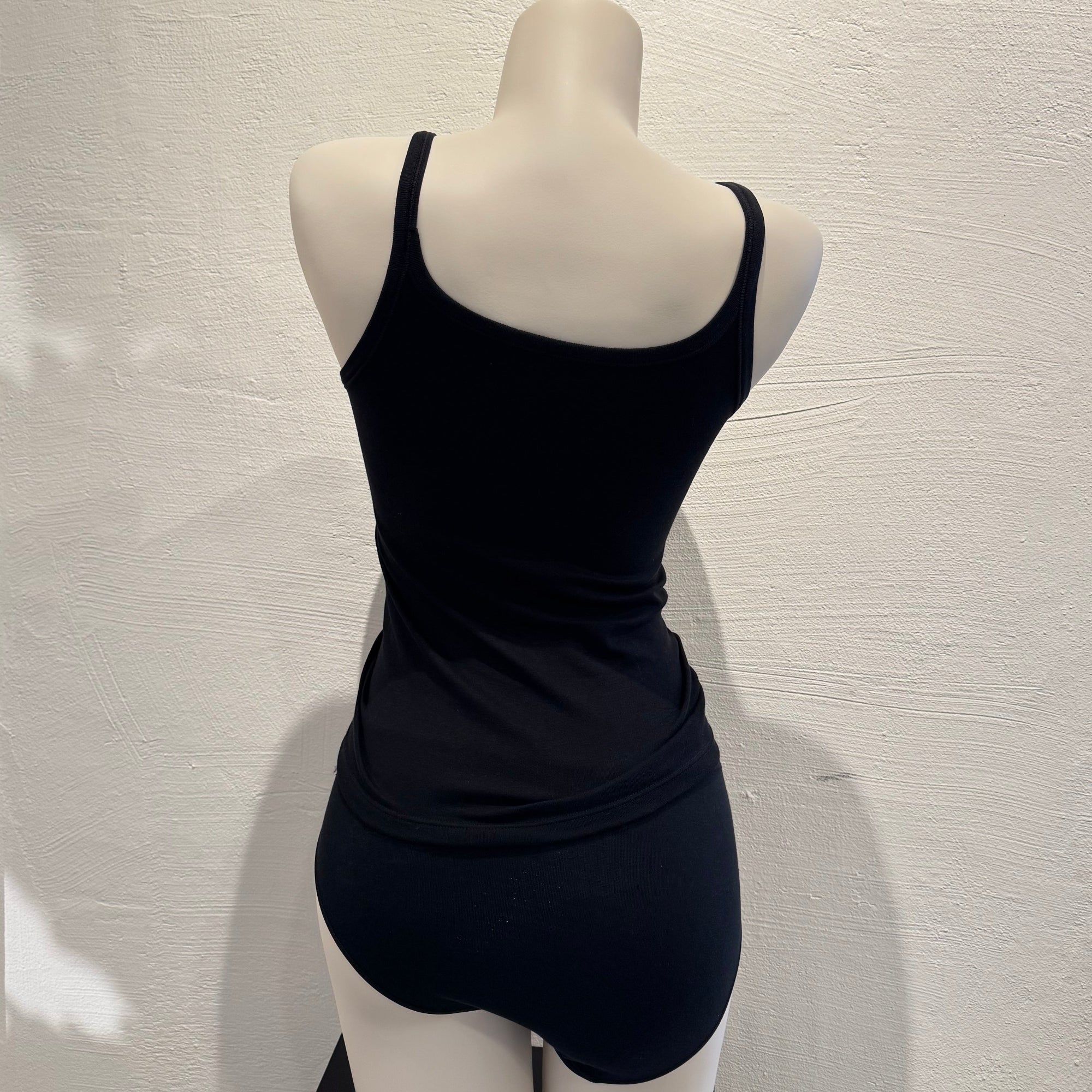 Bekvämt linne från Avet i svart färg. Tillverkat i mjuk, kammad bomull med en liten andel lycra som ger en följsam passform och skön stretch. Linnet har smala axelband och en klassisk, figurnära design som sitter perfekt under tröjor, blusar eller kavajer – men fungerar lika bra att bära som det är. Ett oumbärligt basplagg för varje garderob.