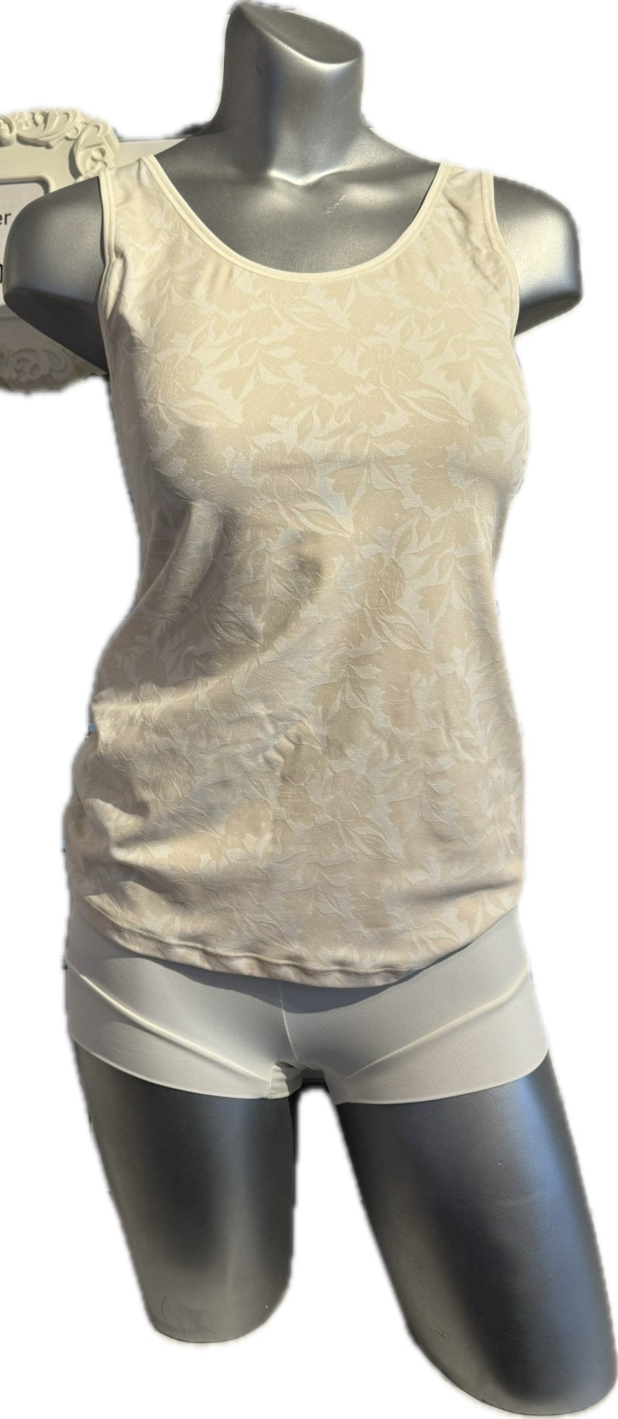 off-white linne från Avet tillverkat av högkvalitativ mikrofiber. Linnet erbjuder en mjuk och behaglig känsla mot huden samt effektiv fukttransport för att hålla dig sval och torr. Den klassiska designen med rund hals och breda axelband ger en smickrande passform som fungerar lika bra under kläder som ensam. Idealisk för både vardag och träning, är detta linne ett mångsidigt tillskott till din klädkollektion.