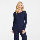 Damella bambu T-shirt med lång ärm – marinblå