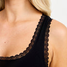 Den klassiska modellen med rund hals och smala axelband gör linnet både stilrent och mångsidigt. Bär det som basplagg under tröjor och kavajer, eller som ett lyxigt underlinne närmast huden.