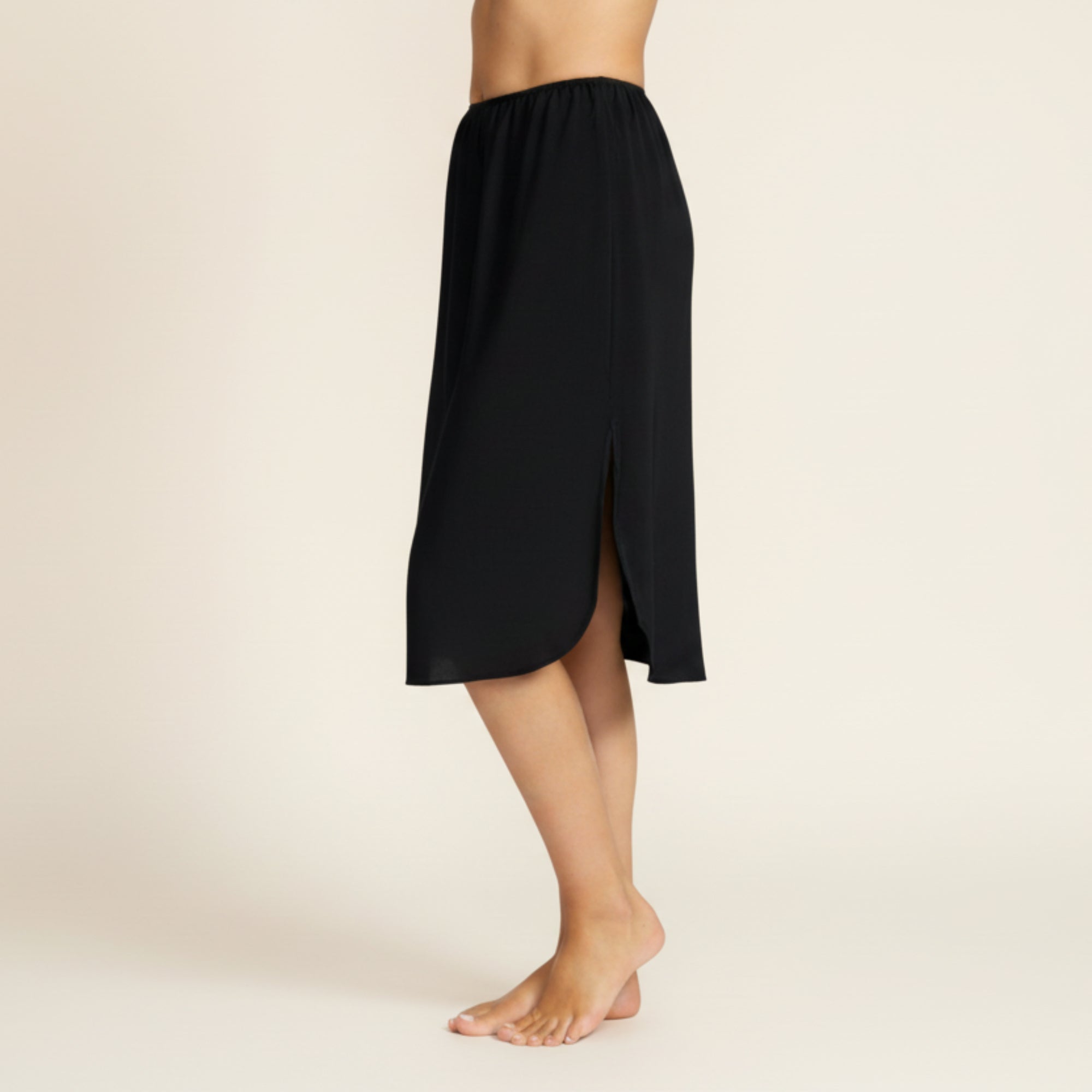 Underkjolen är tillverkad i Europa av högkvalitativ viskos och har en praktisk slits som kan placeras bak, fram eller i sidan beroende på plagg och behov. Ett tidlöst basplagg som ger både volym, rörelsefrihet och en subtil touch av elegans.