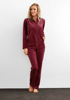Ge dig själv ultimat komfort med denna eleganta mysdress från Damella. Tillverkad i mjuk och högkvalitativ velour som känns skön mot huden och ger en stilren look även när du vill koppla av.