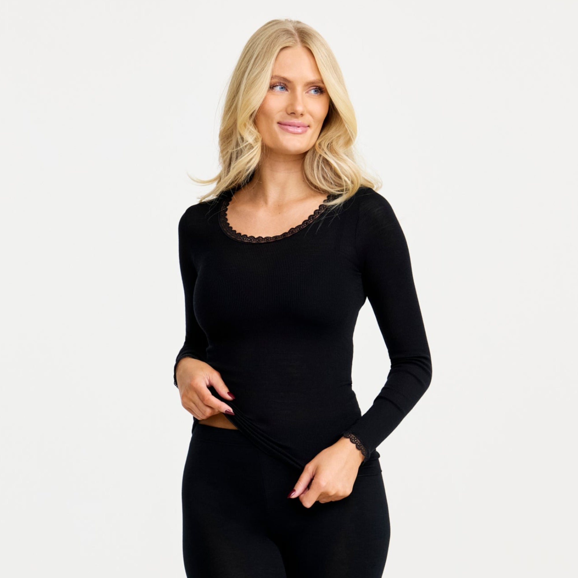 Damella Topp Merinoull/ Siden Svart Lång Ärm