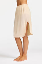 Underkjolen slutar strax ovanför knäna och har en smart slits som kan bäras bak, fram eller i sidan – vilket gör den flexibel och enkel att anpassa efter olika plagg och behov. Ett tidlöst basplagg som snabbt blir oumbärligt i garderoben.