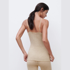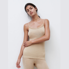 Femilet Juliana topp i beige är ett mjukt linne i 100 % merinoull med smala axelband och en följsam passform. Den beige nyansen är diskret och passar särskilt bra under ljusa plagg, samtidigt som merinoullen ger skön värme när temperaturen sjunker. Linnet fungerar lika bra som ett värmande lager i vardagen som till ett bekvämt set hemma.