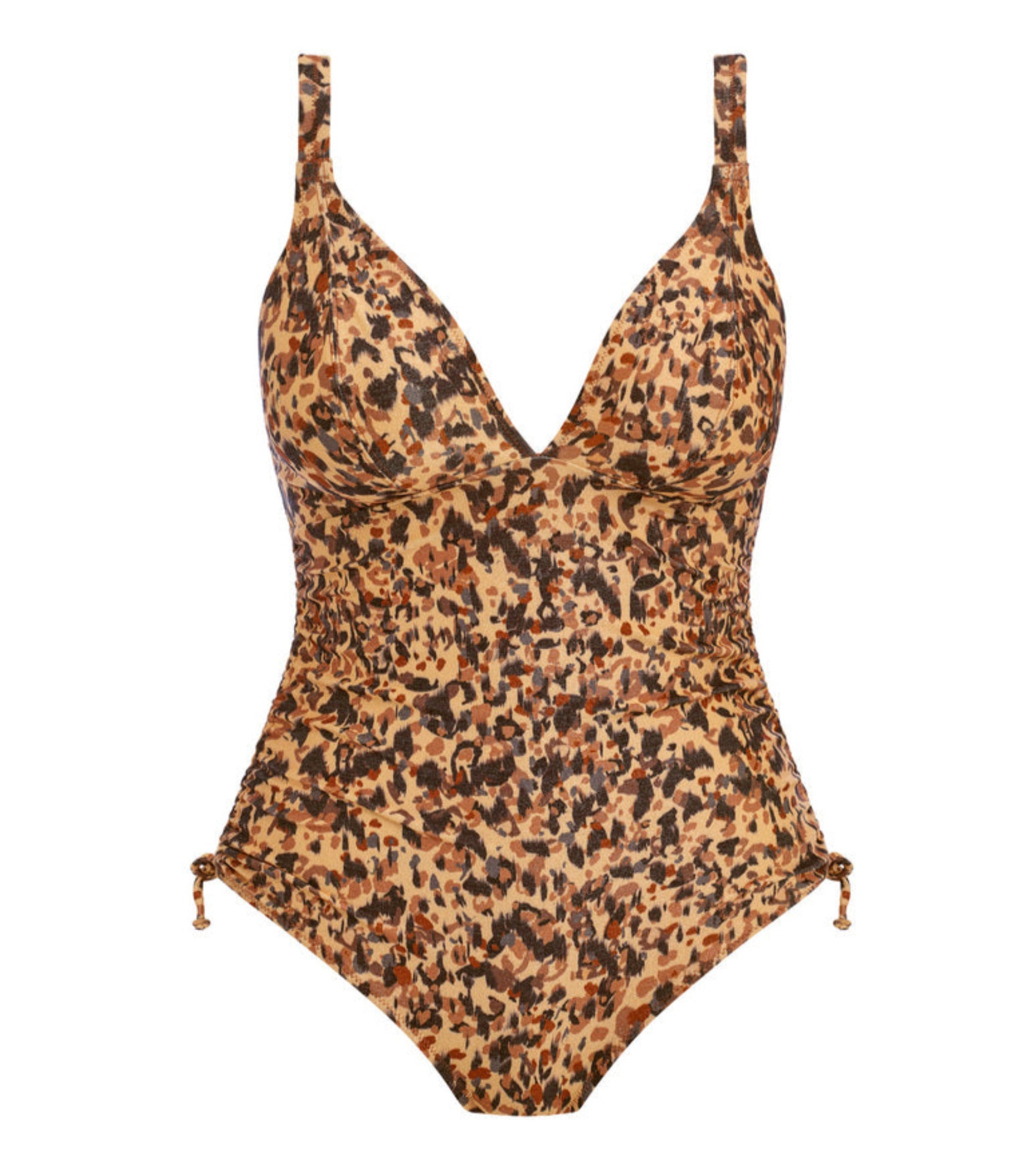Den här baddräkten är bygellös men full av form och funktion. De djupt ringade kuporna med Powernet-foder formar och ger stöd utan att kompromissa med komfort. Den reglerbara, rynkade sidan gör att du själv kan justera täckningen – från mer modest till extra sexigt.