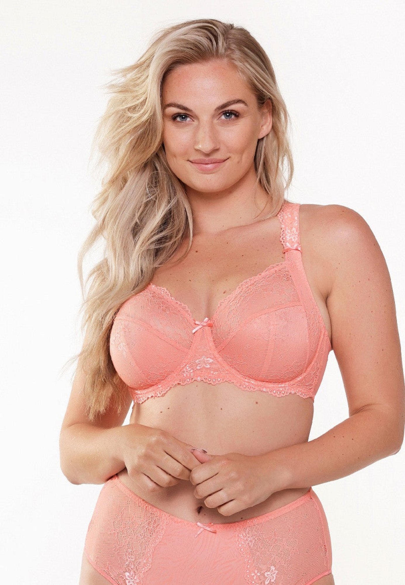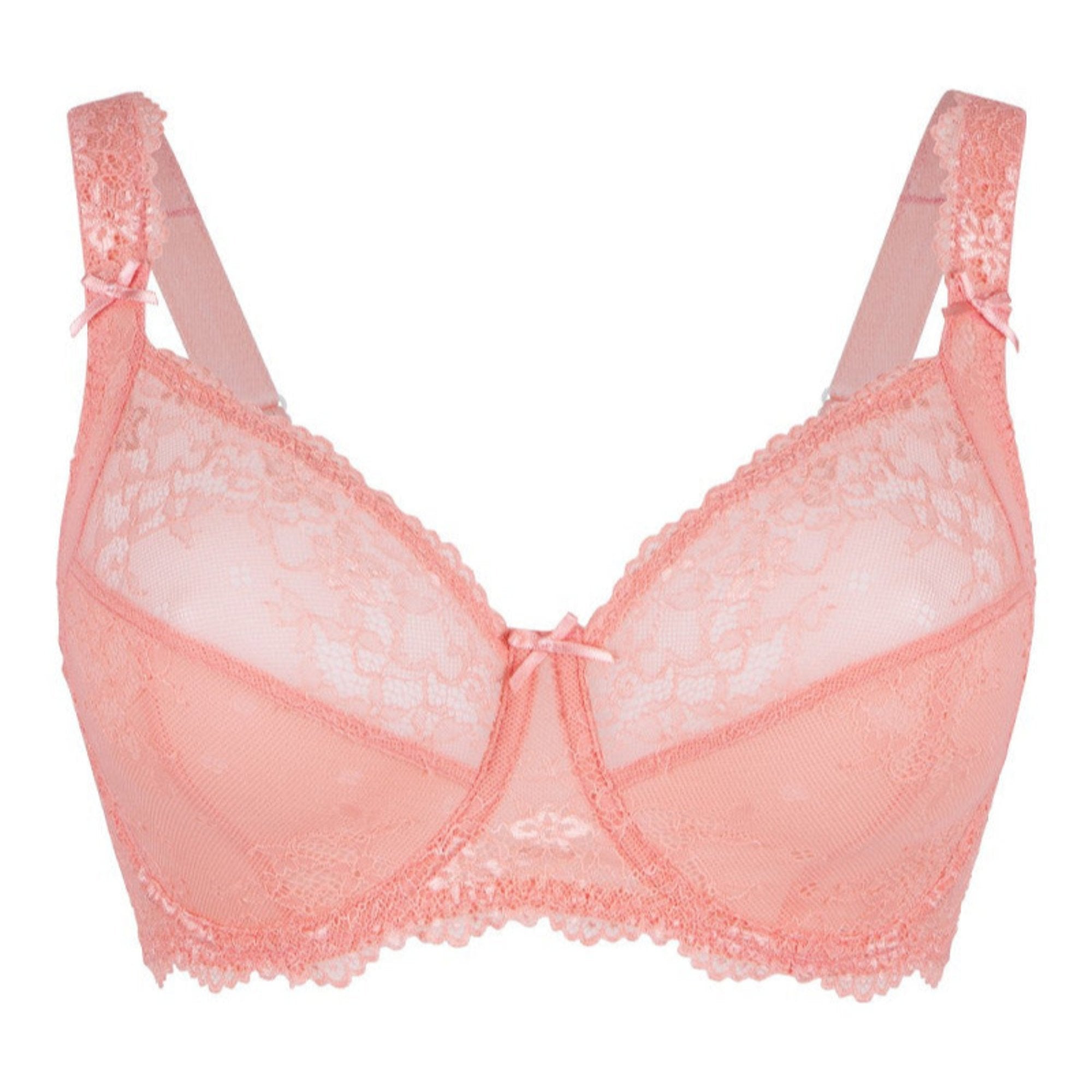 Denna vackra BH från märket Lingadore är en spetsbehå i en söt korall färg. Den är designad för att ge både stil och komfort.