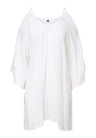 Den lösa passformen och de vida ärmarna ger en fantastisk rörelsefrihet och ett avslappnat uttryck, samtidigt som de bara axlarna skapar en feminin och somrig look. Det lätta, flödande tyget faller vackert och ger en luftig känsla som håller dig bekväm även i värmen.