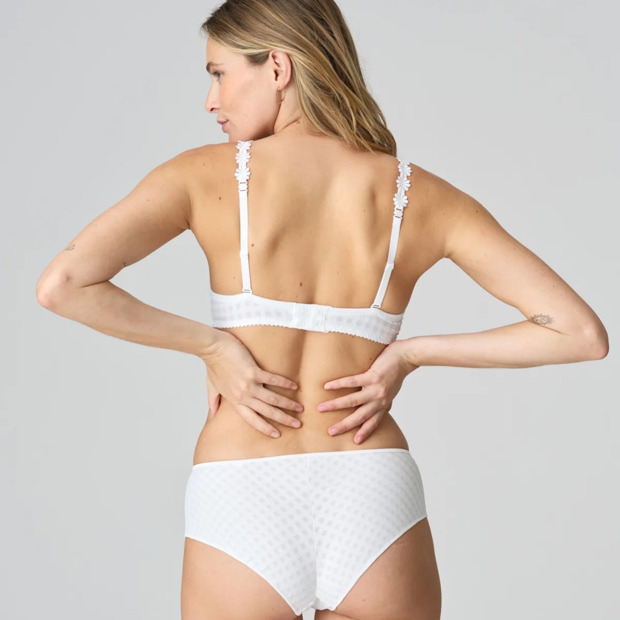 Marie Jo Avero är en elegant och mångsidig bh som kombinerar komfort med stil. Denna modell har vadderade kupor och en plunge-design som framhäver din naturliga siluett samtidigt som den erbjuder utmärkt stöd med sin bygelkonstruktion. De släta kuporna gör den idealisk att bära under tajta kläder för en osynlig finish, medan halterneck-alternativet ger en modern och flexibel look.