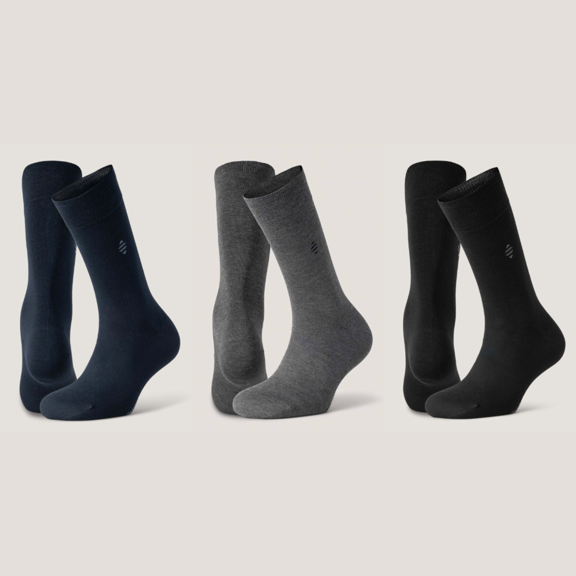 Daniel Bamboo Crew Sock 3-pack – Navy, Charcoal, Svart