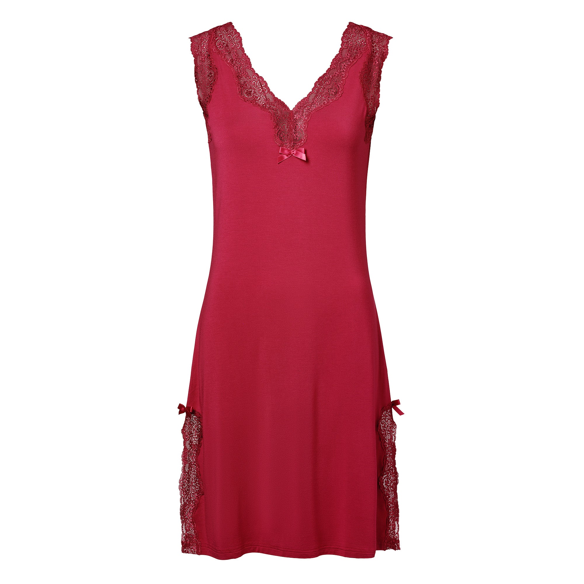 Upplev tidlös elegans och total komfort med detta Classic-fit sleeveless night dress i den vackra färgen Jazzy Red. Nattlinnet har en stilfull, feminin siluett med spetskantad V-ringning både fram och bak, vilket ger ett mjukt och exklusivt uttryck från alla vinklar.