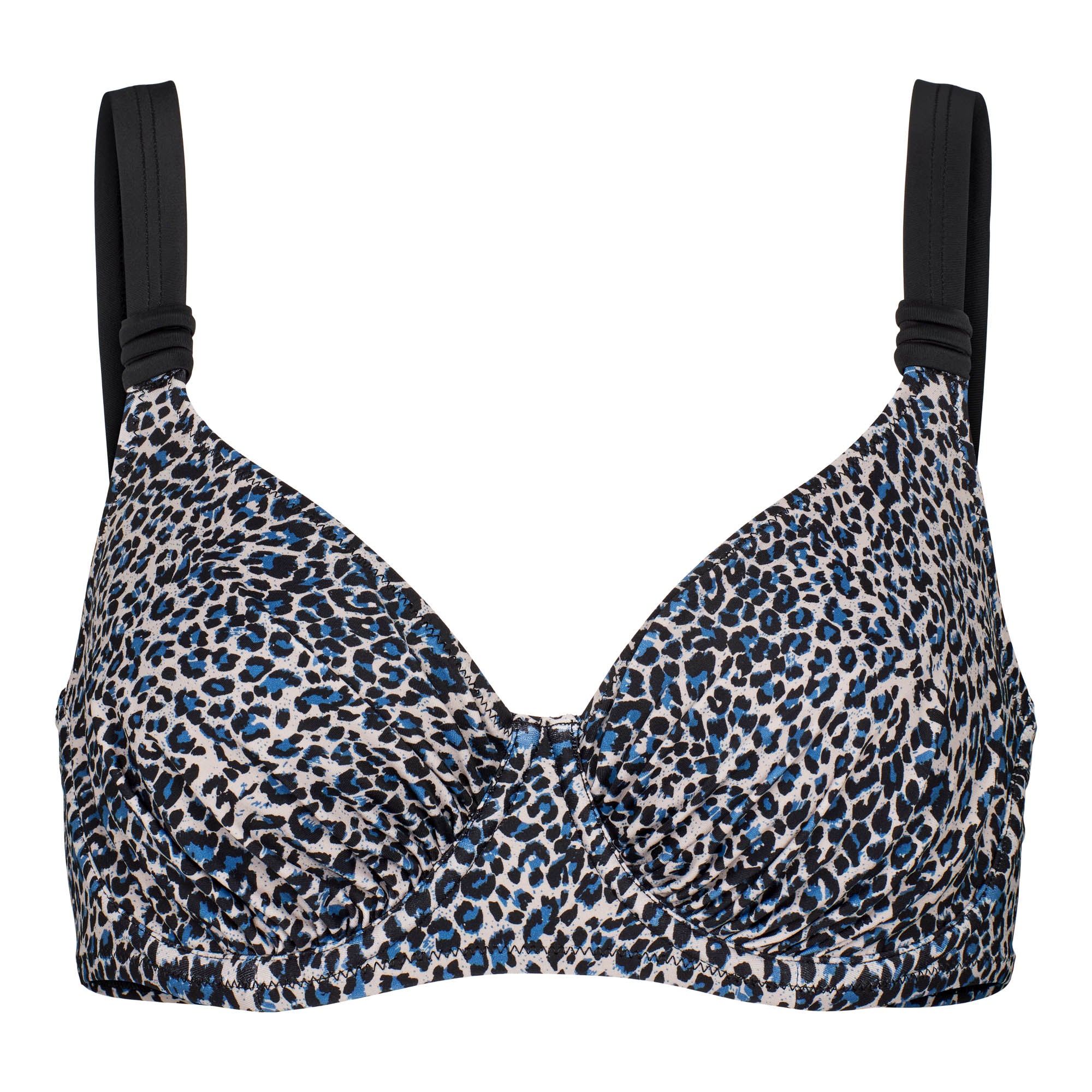WIKI Full Cup Bikini Top Kap Verde är en elegant bikiniöverdel som kombinerar säkert stöd med ett modernt djurmönster i blå och svarta nyanser. Den stilrena designen ger ett självsäkert uttryck och passar lika bra för lugna stranddagar som för mer aktiva stunder vid poolen.