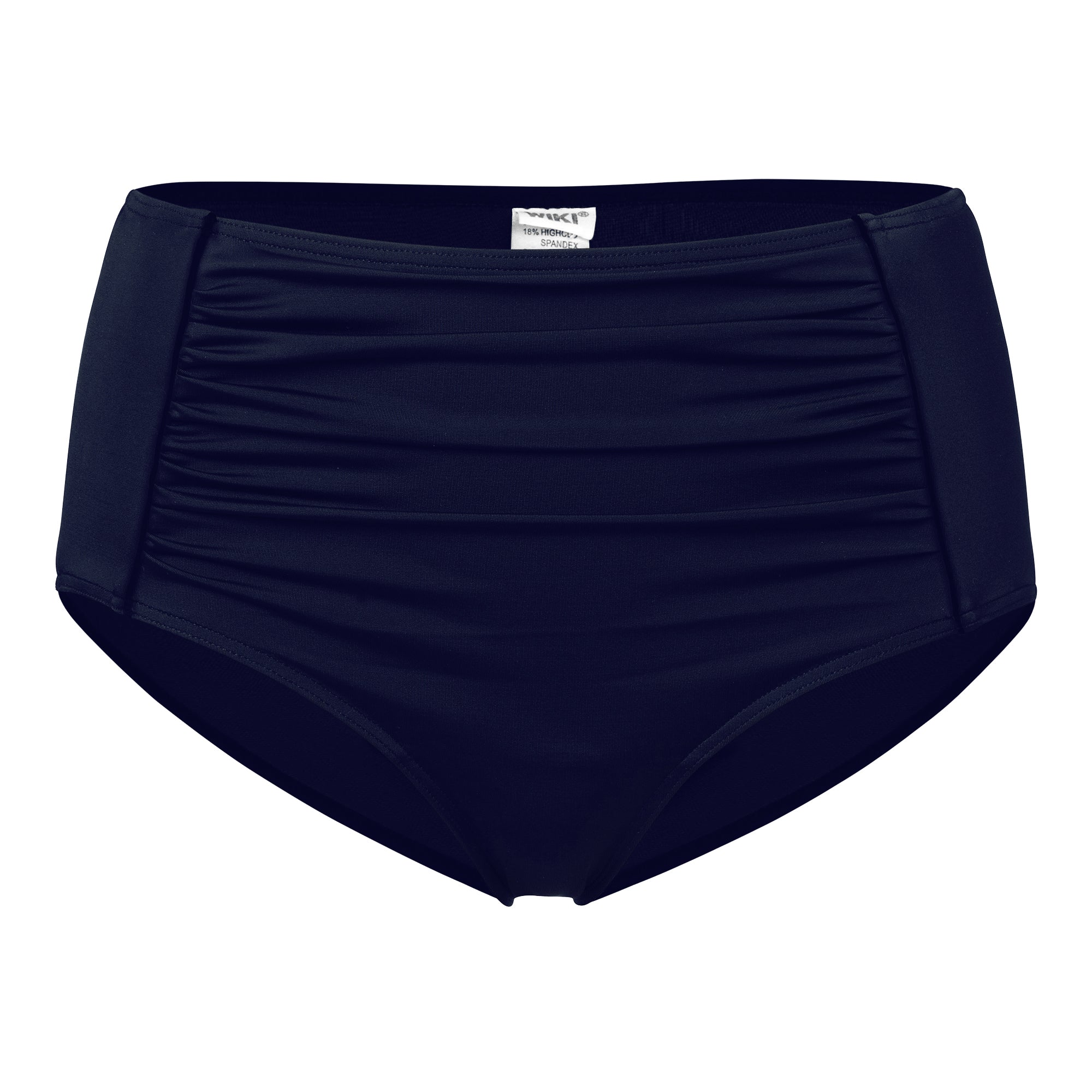 Formande bikinitrosa i medium hög midja från Wiki Swimwear Basic Collection. Ett mittparti med rynk framtill i tyget ger stadig passform som hjälper till att forma magen och släta ut ojämnheter. Benskärningen är lågt skuren vilket gör att trosan blir mer heltäckande baktill i stussen. En trosmodell som är både bekväm och ger en väldigt en fin form.Bra lycra tyg med fint lyster som är i ett snabbtorkande material av hög kvalitet.