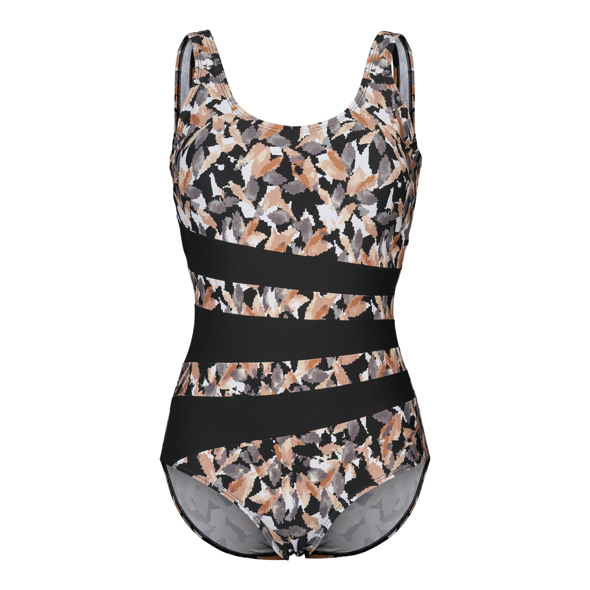 Det livfulla mönstret i svart, beige, vitt och guldorange ger ett elegant och modernt uttryck som passar alla tillfällen, från avkoppling vid poolen till aktiva dagar på stranden. Med sin figursmickrande passform och noggrant utformade detaljer erbjuder denna baddräkt både komfort och stöd. Valentina De Luxe är en del av WIKIs högkvalitativa kollektion, älskad av kvinnor i hela Skandinavien. Ett utmärkt val för dig som vill känna dig både självsäker och stilfull i sommar!